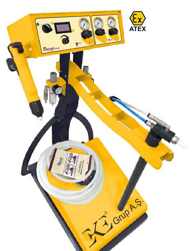 Micron creative B300 multicolor toz boya cihazı hızlı renk değişimleri için tasarlanmıştır. Klasik modeldeki gibi 50lt toz boya deposu yoktur. Elektrostatik toz boya kutumuzu cihaz alt tablasına yerleştirerek multicolor boya borusunu kutu içerisine sokup cihazı çalıştırıyoruz. Alt tabladaki vibrasyon motoru sayesinde boya kutusuna titreşim verilerek boyanın akışkanlığı sağlanmış olur. Ayrıyeten multicolor boya borusundan boya kutusu içerisine hava verilerek boyanın kabarmasıda sağlanmış olur. Bu sayede hızlı ve verimli toz boya uygulamaları elde edilmektedir.